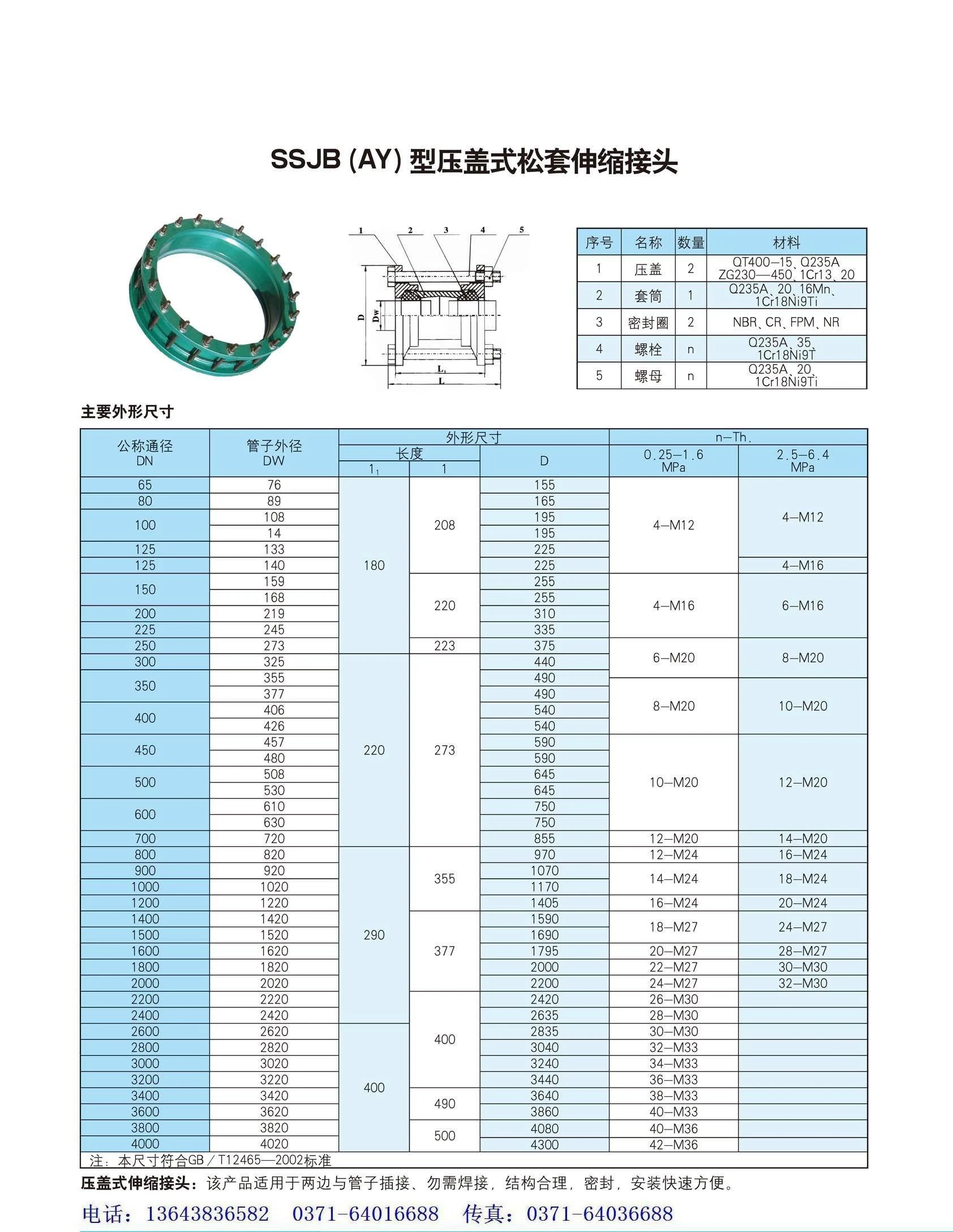 SSJB (AY)型(xing)壓蓋式鬆套伸(shen)縮接頭