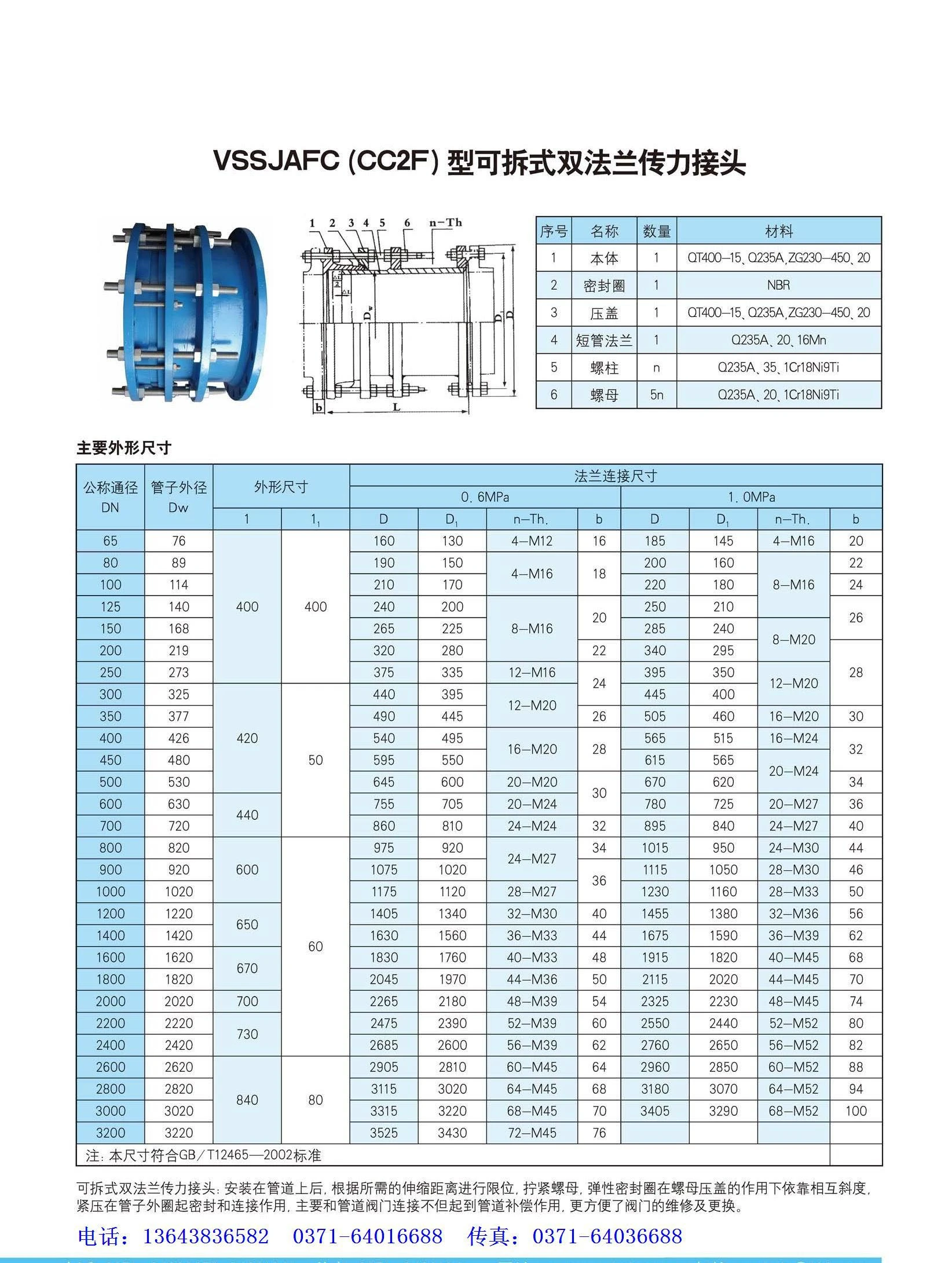 VSSJAFC (CC2F)型可拆式雙灋蘭鬆套傳力接頭