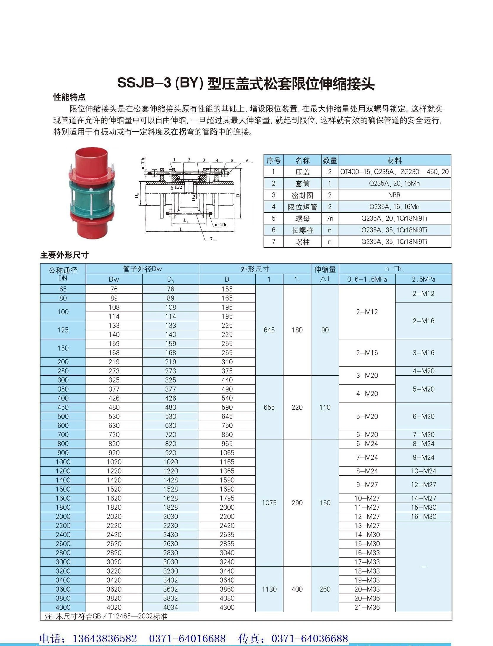 SSJB-3 (BY)型壓蓋式鬆套限(xian)位伸縮接頭